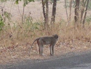 They were joined by all the other monkeys, all of them coming from the trees on the south side. They gathered on the roadside and it was easy to count them: males, females, young adults, juveniles, infants: 20 of them in total. This was the first time I had seen all of them together at the same time, although I had counted 20 before, as they slowly emerged from the forest. It was pretty clear that they were all aware of the nature of this event: a crisis for the group, and they had responded as a group and were staying together in group solidarity.