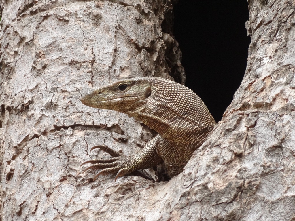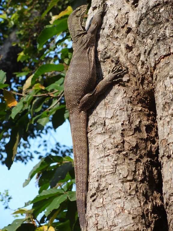 I am pretty sure that there are at least two pairs of Bengal monitor lizard (Varanus bengalensis) in the forest and one appears to be pregnant. This is the first sighting I had of one, a few months ago: