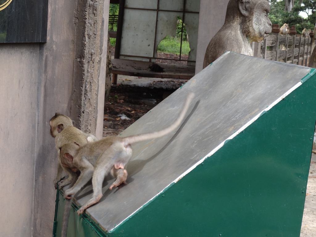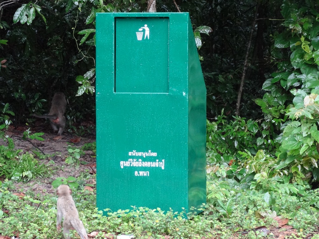 A closer look at the bin outside the main gate tells us something about the monkeys who hang out there.