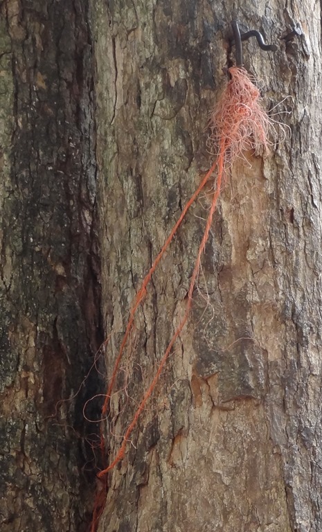 The long-tailed macaques in our forest love to play with everything they find and I have been amazed that there do not seem to have been any fatalities caused by pulling plastic bags over their head, or by strangulation as they wrap strips of cloth around their necks, and so on. But we are now convinced that this monkey’s injuries were caused by accidentally pulling a knot tight around his arm. So a rope tied to a spike in the tree and left after some ceremony or festival seems to have caused the agony this monkey must have suffered.