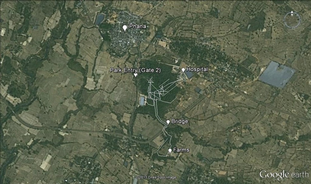 and the feeding sites he marked: