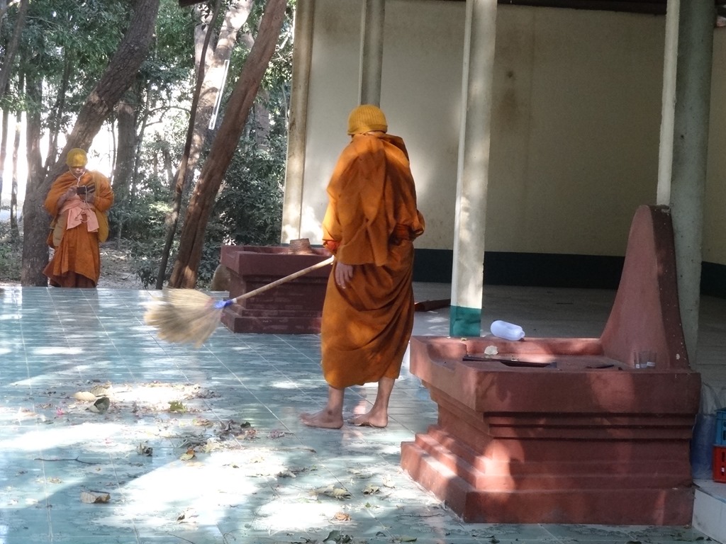 The forest itself is tidied up: the monks practise walking meditation so paths are swept clear of fallen leaves and some of the undergrowth cut back.