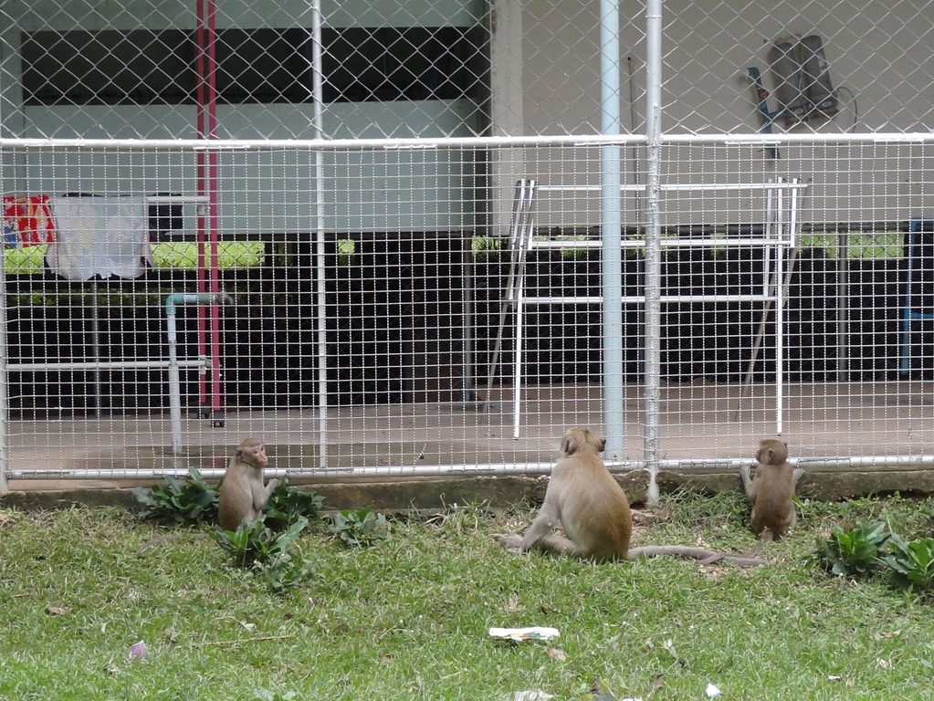 But as the number of monkeys in the forest has increased, so too have the stories of marauding groups travelling further afield, to nearby villages and to the grounds of the Phana District Hospital. The hospital, it should be noted, was built about 12 years ago on ground that had been part of the forest. So as far as the monkeys are concerned, the hospital is their territory.