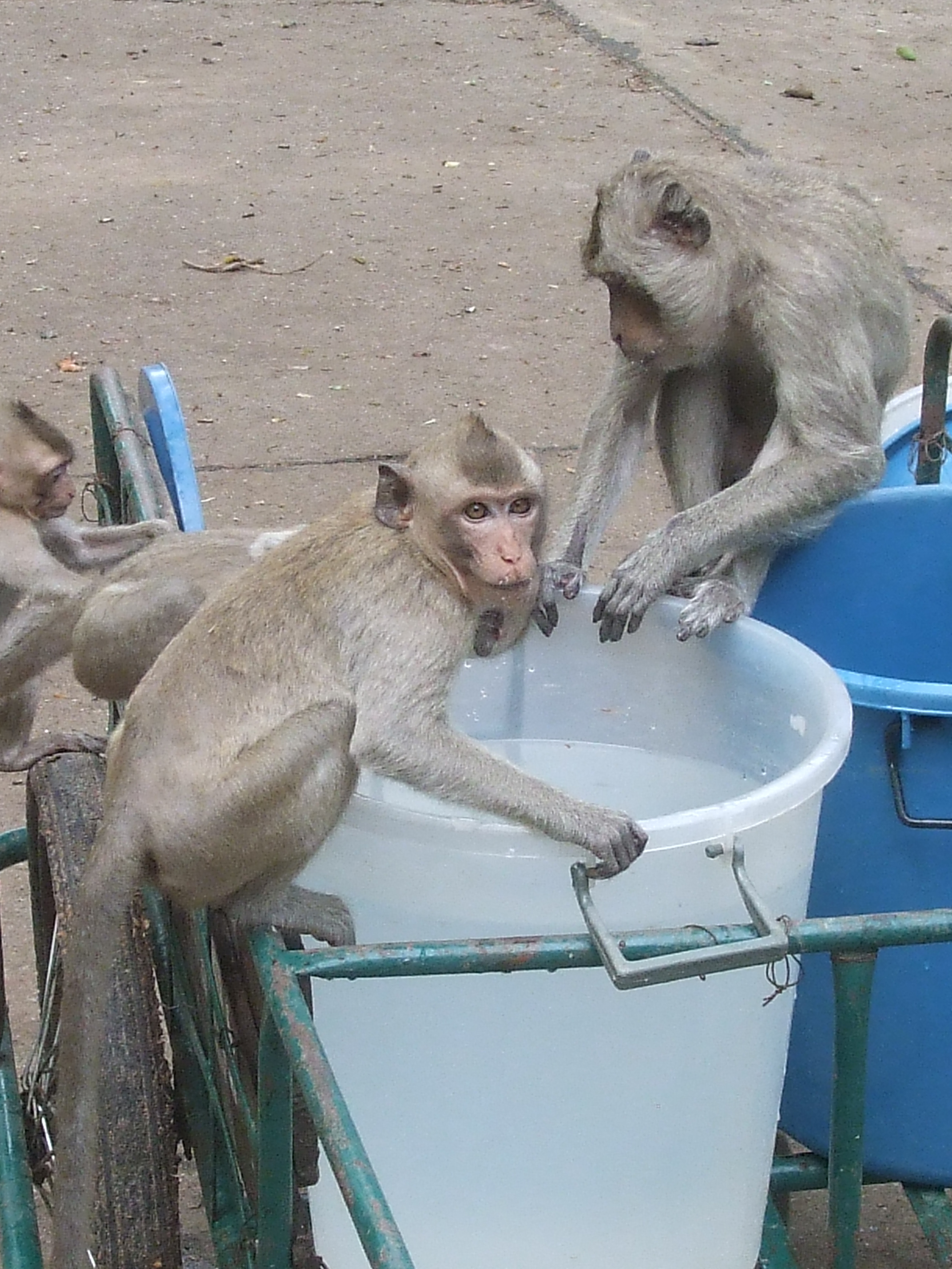 The monkeys enjoy it, too, when Simon provides them with water, but they are not very patient, as you will see.